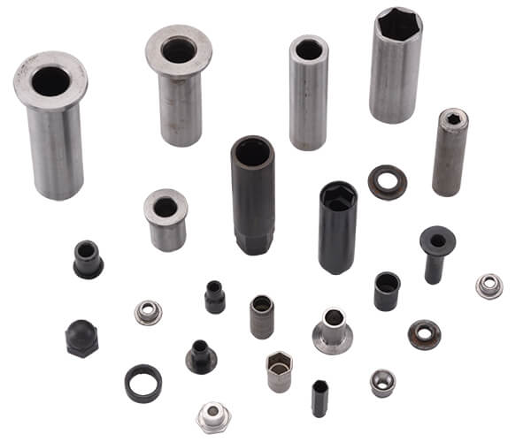 Products made with 7-die long-stroke nut shapers and tube shapers